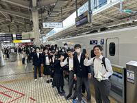東京駅ホームで新幹線待ちです。みんな楽しみいっぱいの顔をしています。