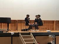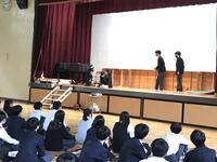 実行委員さんが修学旅行の心得を寸劇で面白くわかりやすく確認しました。楽しい三日間を過ごしたい実行委員の思いが伝わってきます。