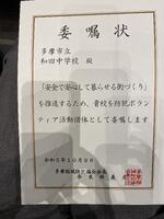 生徒会役員と生徒会担当の先生が休みの日にも関わらず、和田中代表として参加してくれました。男女各3人の参加は本校の凄さです。授与の際も会場に響き渡る「ハイ」と立派でした!