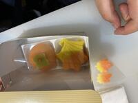 干菓子の完成!残りの部分を試食して「美味しい」と感激してます。