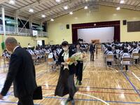 この日の6時間目、昨年度までお世話になった先生や職員の方々に感謝の気持ちを表す「離任式」を体育館で行いました。