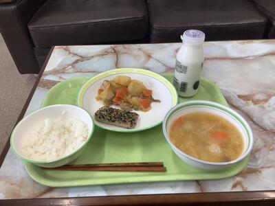 いかの南部焼き、肉じゃが、味噌ちゃんこ汁、ご飯、牛乳です。