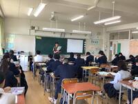 3年生は技術科と家庭科で週1時間ということで技術の授業は隔週になるので年間17.5時間という少ない時間だから、1回を大切にしたいと話がありました。その後、情報の内容に入り、集中して学んでいます。