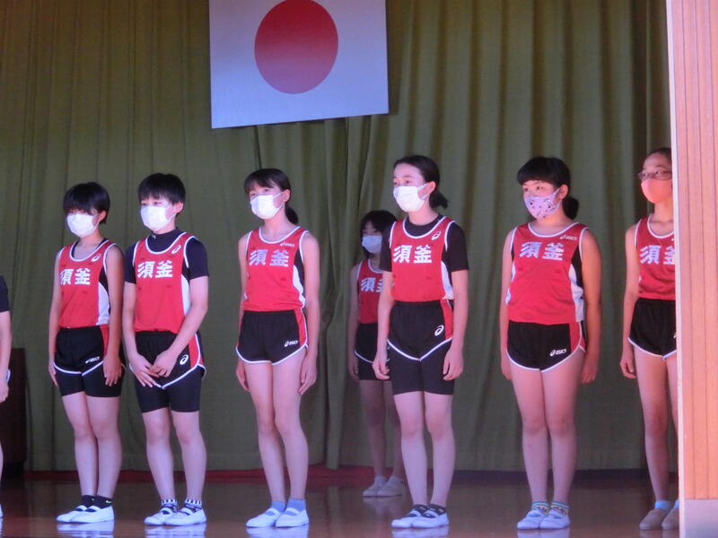清掃の時間に、7日に出場する小体連陸上競技大会の壮行会を行いました。まず、6年生全員が自分の名前と出場種目を紹介しました。次に、5年生が中心になって応援団を結成し、励ましの言葉と応援のエールを送りました。最後に、6年生の代表児童が大会当日の決意を発表しました。意気込みが感じられる素晴らしい発表でした。4月から始まった練習の成果を発揮し、全力で取り組んでくれるものと確信しました。
