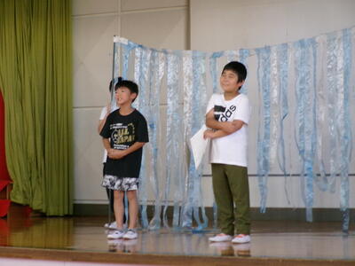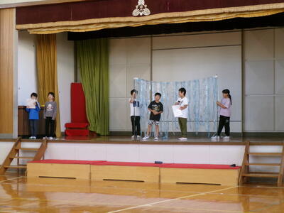 25日のすがまっ子発表会に向けて体育館の練習が本格的になってしました。セリフや動きを覚えるのも大変ですがどの学年もがんばっています。今日は、2年生と4年生の様子を紹介します。