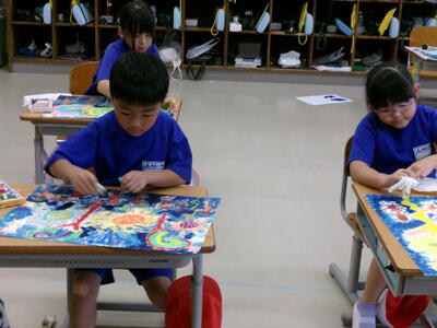 学習発表会練習もがっばっているところですが、図工や書写の作品作りも進んでいます。素敵な絵が仕上がってきていむ。
