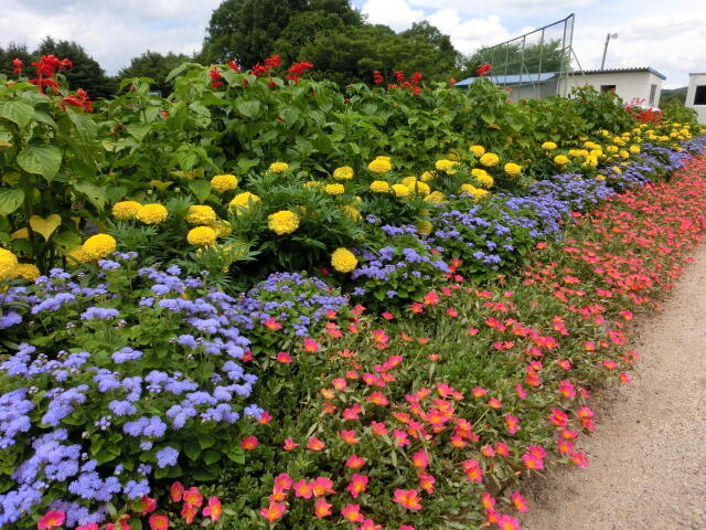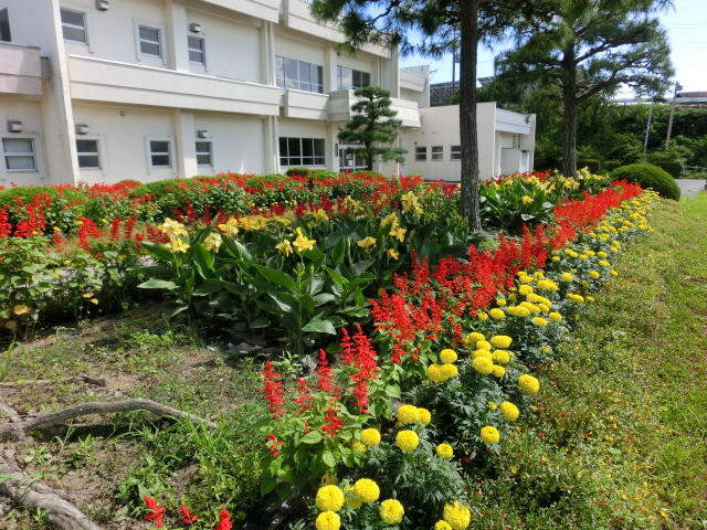 暑い中、学校花壇への水やり・除草等にご協力いただき、誠にありがとうございます。本年度もたくさんの花苗を提供していただきました。定植作業に時間はかかりましたが、お陰様で順調に生育し、きれいな花を咲かせています。7日(土)から立秋になりますが、本格的な暑さになってきました。頻繁に夕立も発生していますので、夏休み終了まで無理のない範囲でよろしくお願いします。