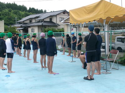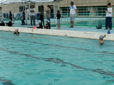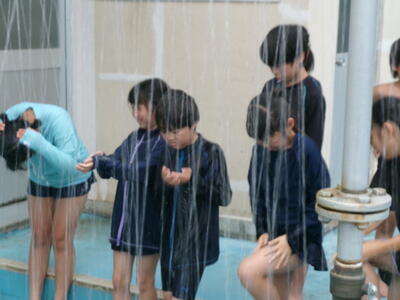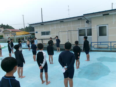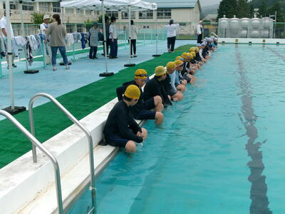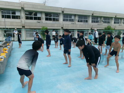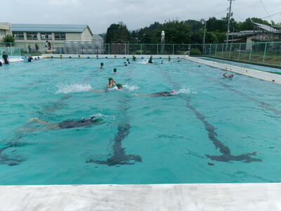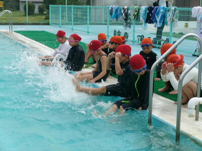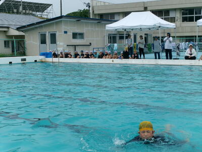 7月10日3、4年生の水泳記録会が行われました。天候の崩れもあり、早めの実施の判断をさせていただきました。メールで実施の有無に合わせて時間の変更もお知らせしたところ、開始時刻にはお家の方々にも参観いただきスタートできました。ありがとうございます。