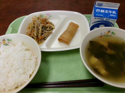 18日(金)の終業式まで給食があるので、給食もあと5回です。今日の献立は、中華の献立(春巻き、チンジャオロース、わかめスープ)です。もりもり食べて暑い夏に備えていきましょう。