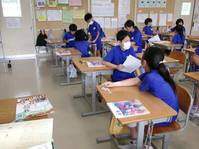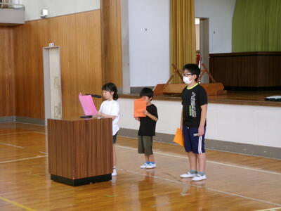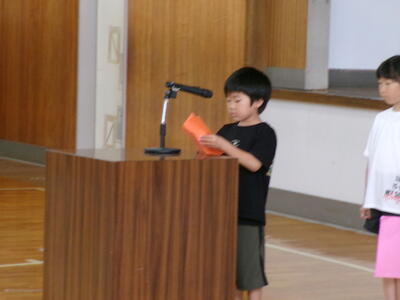 終業式では、1学期がんばったことの発表も行いました。どの学年の発表の一生懸命な姿が見られました。また、終業式の後には、夏休みの生活について気をつけることを生徒指導担当よりお話がありました。