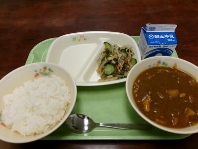 今日の給食は・・・・みんな大好きカレーでした。暑くて食欲が落ちるこの季節ですが、カレーで元気もりもり。残り一日も元気にがんばります。