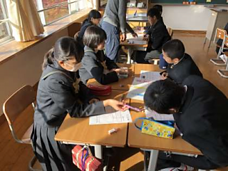 泉中までバスで行き、いつもとは違った環境の中での授業でした。