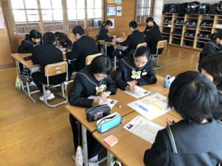 本日、午後から3年生は泉中学校に出向き、授業研究会を行いました。