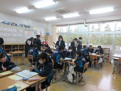 2年生の学級活動を石川地区の先生方に見ていただき、授業力向上について研究協議をしました。