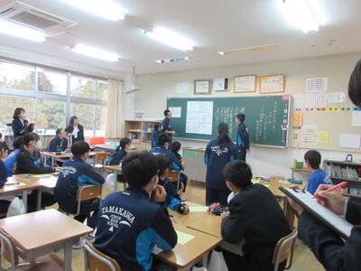 11月12日(水)に村の議員さんがおいでになり、玉川村や玉川中について、生徒と話し合いを持ちました。