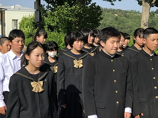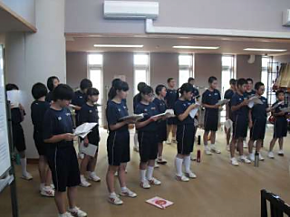 夏休み、あの暑い日差しの中で頑張った選手たちを全校生でたたえ、応援しました。大会当日、ぜひ自己ベストを目指して頑張ってほしいと思います。