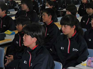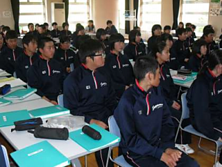 須釜中の生徒はとても真剣に話を聞いていました。