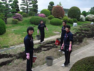 本日の放課後、手の空いた生徒で学校の花壇に堆肥を搬入しました。