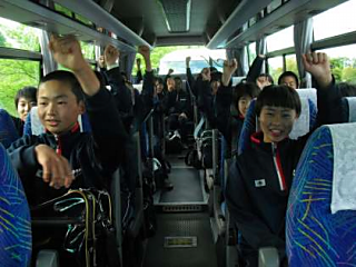 応援の生徒と選手共に白河を先ほど出発しました。