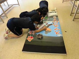 午後は残念ながら、雨になってしまいましたが、全校生が一つの作品作りに意欲的に取り組むことができました。