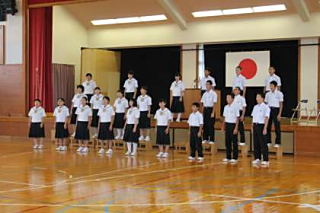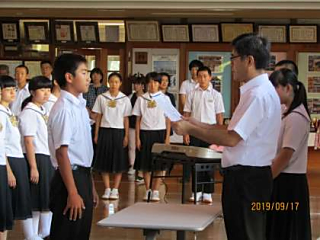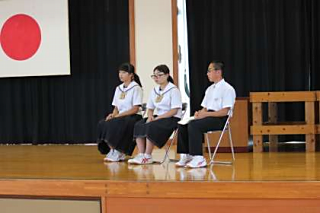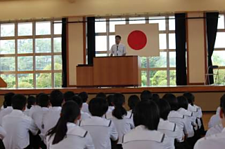 前日は台風の影響で臨時休業でしたが、大きな被害もなく全校生の元気なあいさつで会が始まりました。