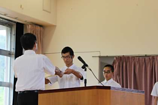 本日はまず週末の大会で入賞した剣道部と野球部の表彰されました。