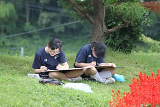 本日、校内絵を描く会が実施されました。午前中は青空で絶好の写生日和でした。