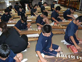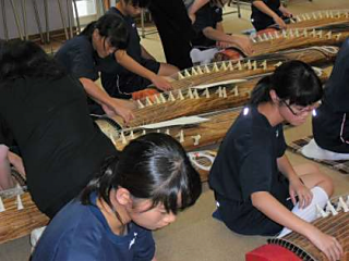 今日の5、6時間目から1年生は箏の学習を音楽の授業で行っています。