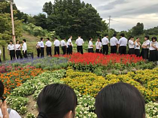 本日、放課後、全校生が美しく咲き誇る花壇に集合してドローンで記念写真を撮りました。閉校に向いて、記念の一枚を笑顔で撮影し、いい思い出になりました。