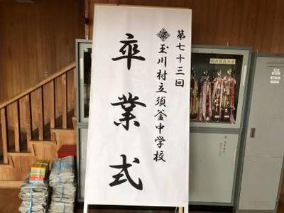 須釜晴れともいうべき、空の下、須釜中学校第73回卒業証書授与式が行われました。