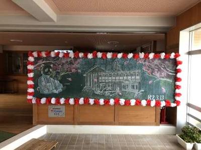 卒業式会場の体育館は3日に1、2年生が式にふさわしいものを作りあげてくれました。