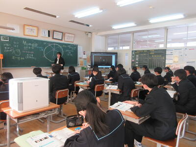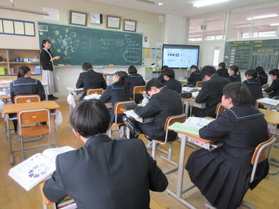 2年生は、社会科の授業です。大都市圏、政令指定都市について学んでいます。