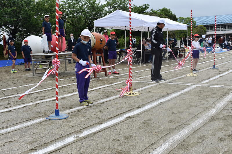 5月20日(土)に、運動会が開催されました。今年度のテーマは、「玉一!!大きく一歩ふみ出せ!!みんなが主役!!」です。感染症予防のための制限なしの運動会。児童は、競技に応援に力いっぱい取り組み、まさにアフターコロナの大きな一歩を踏み出した運動会となりました。開会式では、創立150周年を記念しテープカットを実施。団体競技では、久しぶりに大玉送りが復活しました。今回は紅組の勝利となりましたが、白組も粘り強く応戦し見ごたえのある競技となりました。ご来賓、保護者の皆様、地域の皆様には、たくさんの声援と励ましのお言葉をいただきまして、誠にありがとうございました。