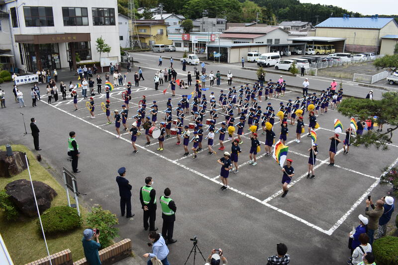 5月25日(木)に、4・5・6年生による交通安全鼓笛パレードが行われました。沿道や役場駐車場の周りで多くの方が見守る中、堂々とした演奏を披露することができました。また、児童を代表して鼓笛隊の主指揮者が村長さんの前で、交通安全を願ってメッセージを発表することができました。たくさんの声援を送ってくださった保護者の皆様、地域の皆様、そして、準備や交通整理をお手伝いいただいた関係各位の皆様に感謝申し上げます。