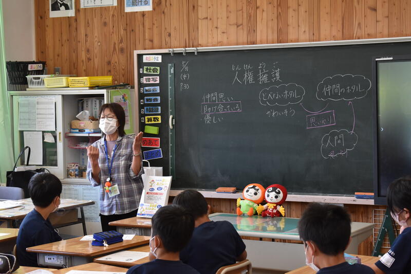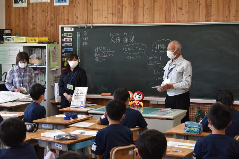 5月31日(水)に、5年生児童を対象とした人権教室が行われました。児童は、物語「とべないホタル」を視聴したり、人権擁護員の方々の説話を聞いたりして、人権擁護の意味について考えました。子どもたちの発言の中には、相手のことを思いやる内容や相手を尊重する内容の意見が多く含まれており、自分の体験を振り返りながら人権について真剣に考える姿が見られました。今回の学習で気づいたことをこれからの生活に生かしていくことを期待しています。