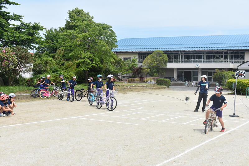 6月6日(火)に、自転車教室が行われました。3・4年生は、校庭に設置されたコースを走行し、自転車を安全に乗るためのルールを学びました。5・6年生は、実際に一般道を走行し、信号機のある交差点や横断歩道のわたり方などを学びました。5・6年生の学習では、村交通安全協会・玉川駐在所の方々が交通整理をしてくださったり、安全確認の仕方をアドバイスしてくださったりしました。自転車に乗りなれている児童もそうでない児童も、緊張した表情で学習に臨んでいました。自転車の貸し出しに協力いただいた家族の皆様、ご指導いただいた関係機関の皆様のおかげで、充実した活動をすることができました。本村は、自転車による地域おこしの活動がさかんです。だからこそ、今回の学習を生かし、これからも児童の自転車による事故を起こさないよう啓発を続けていきたいと思います。