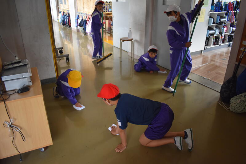 6月13日(火)は、ボランタリータイムが行われました。今回着目したのは、1年生の働きぶりです。自分たちの教室の前の廊下をきれいに雑巾がけすると、正面玄関、職員室前、保健室前と掃除の範囲をどんどん広げていきました。静かに、しかもていねいに働く姿に、入学から2か月間の成長を垣間見ることができました。