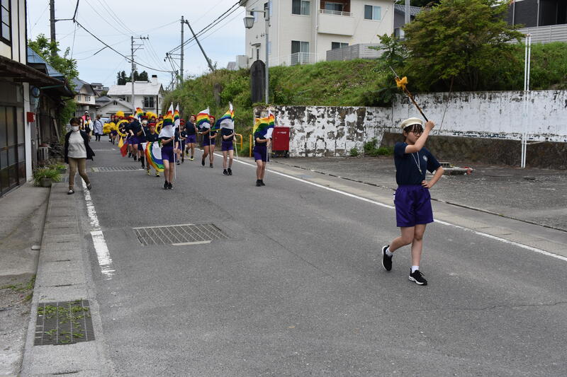 5月25日(木)に、4・5・6年生による交通安全鼓笛パレードが行われました。沿道や役場駐車場の周りで多くの方が見守る中、堂々とした演奏を披露することができました。また、児童を代表して鼓笛隊の主指揮者が村長さんの前で、交通安全を願ってメッセージを発表することができました。たくさんの声援を送ってくださった保護者の皆様、地域の皆様、そして、準備や交通整理をお手伝いいただいた関係各位の皆様に感謝申し上げます。