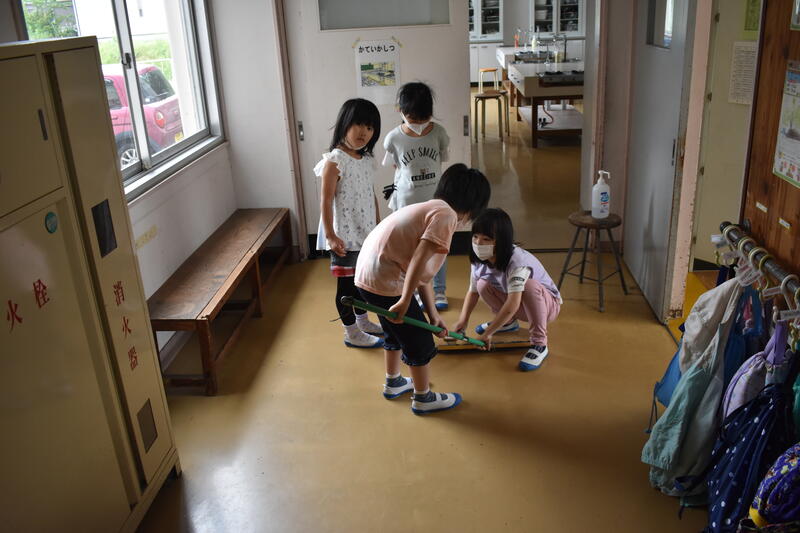 1年生が縦割り清掃に加わりました