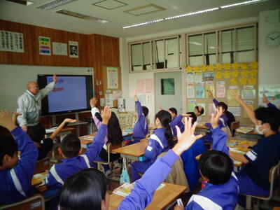 外国語活動 投稿日時 : 2024/11/20 第1小学校管理者 カテゴリ: 4年生の外国語活動の様子を紹介します。 今回の授業は、アルファベットの学習でした。 映し出された映像の文字を見て、 大文字か小文字かの学習を進めていました。 {{options.likeCount}} {{options.likeCount}}