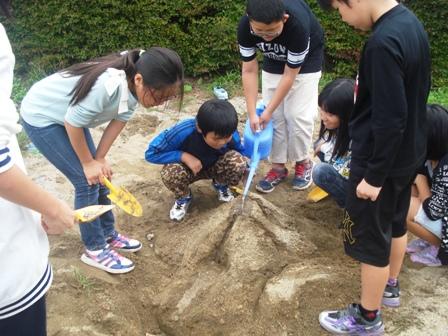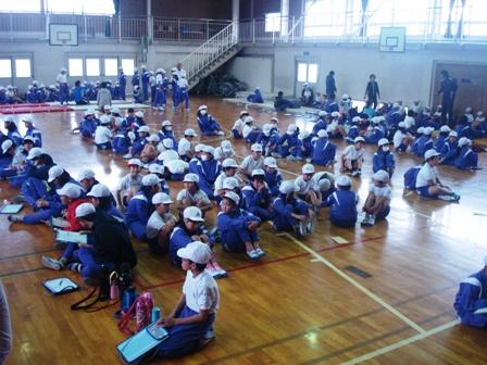 1年生と6年生、2年生と5年生、3年生と4年生のそれぞれのグループで、6つの種目を回りながら、実施していきました。上級生が下級生の面倒を見ながらスムーズに行っていました。