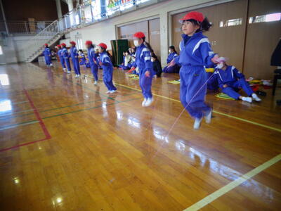 3年生は3分間、4年生は4分間の持久跳びに挑戦した後、