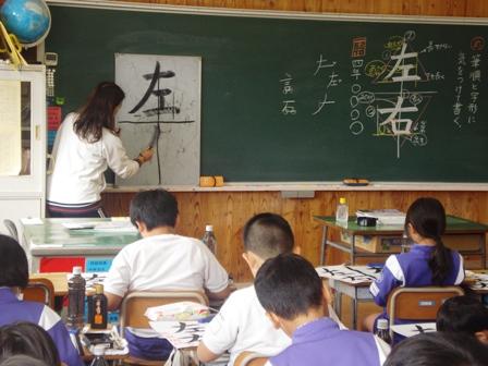金沢先生による書写指導(3年2組)