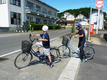 全員が自転車に乗って、練習します。
