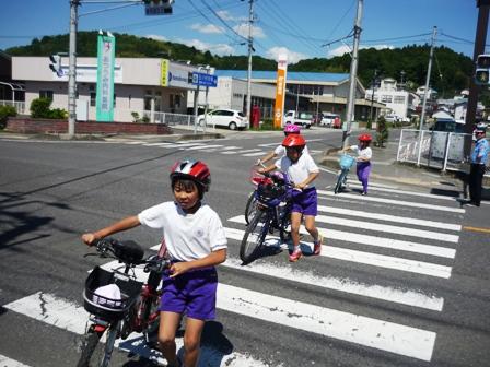 横断歩道は、自転車を降りて、歩いて渡ります。安全確保ありがとうございます。