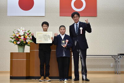 「第18回石川地方交通安全大会」において、本校の特設自転車部が作成した交通安全立看板が小学校の部で最優秀賞になり、表彰式に参加してきました。