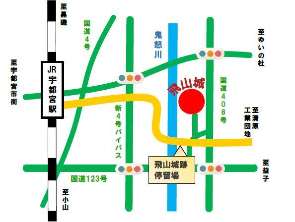 ◆芳賀・宇都宮LRT(ライトライン) ご利用の方:「宇都宮駅東口」停留場乗車、「飛山城跡」停留場下車、徒歩約20分