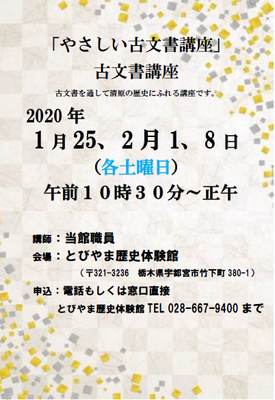 | 問合せ | とびやま歴史体験館 電話:028-667-9400 |
