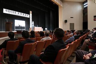 2月22日(土)、教育会館小ホールにおいて、各市町管協から選出された評議員51名が参加する中、渡辺陽平全日教連委員長を迎え、令和六年度評議員会を開催しました。