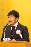 内村前会長に感謝状を渡す鍋谷新会長 退任者代表挨拶をする内村前会長